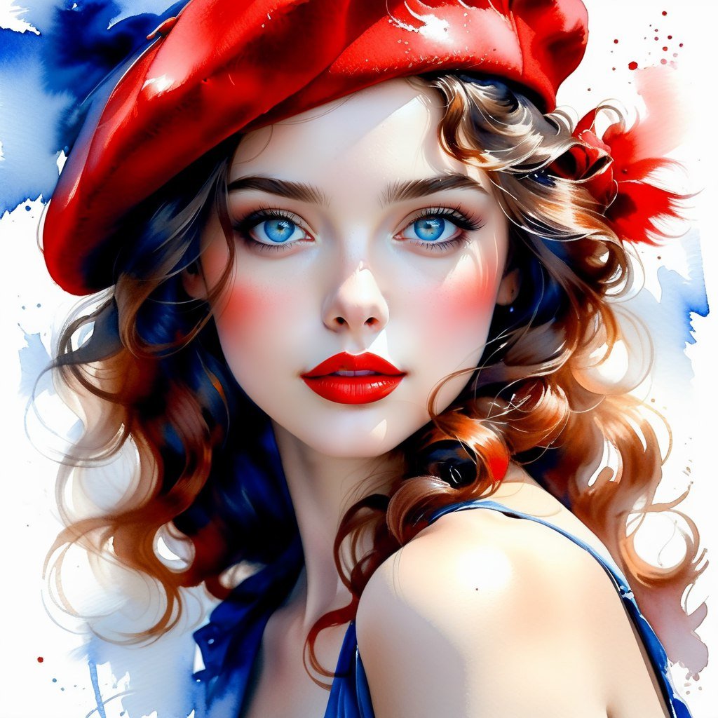stable diffusion Девушка в алом берете: нежность, красота и акварельный ветер. Картинка из нейронной сети Stable Diffusion