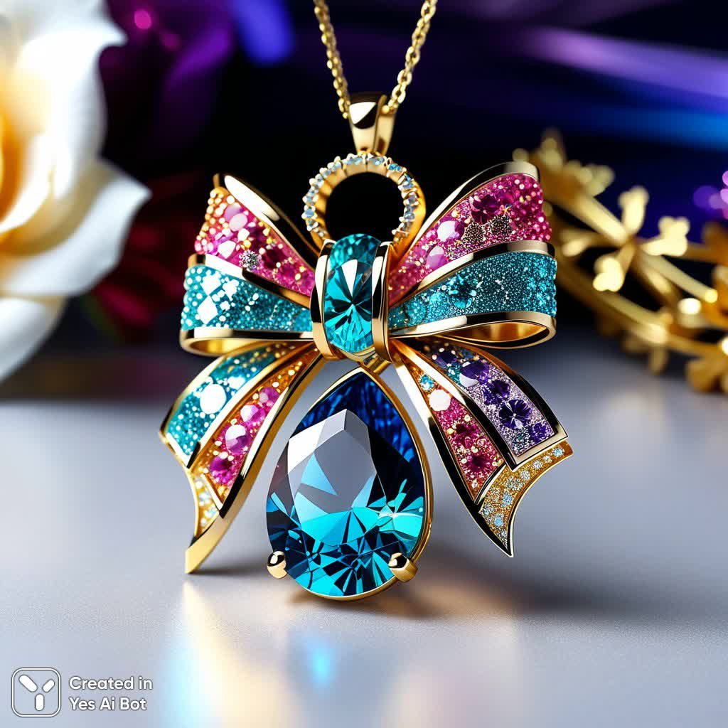 Сложный бантик-кулон, с многослойной структурой и градиентным блеском драгоценных камней, стиль Pinterest, кинематографичное освещение