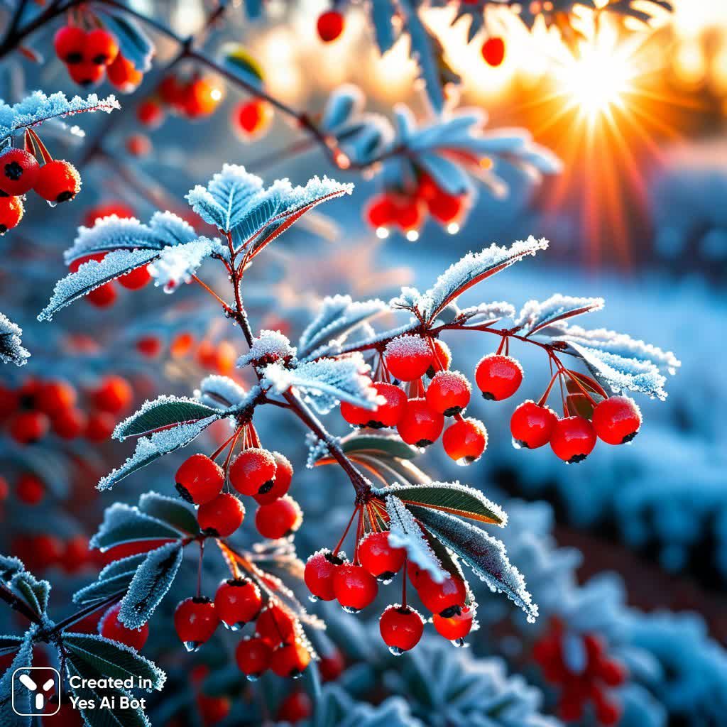 stable diffusion Рябина в морозном утреннем сиянии зимнего солнца. Генерация из нейросети Stable Diffusion