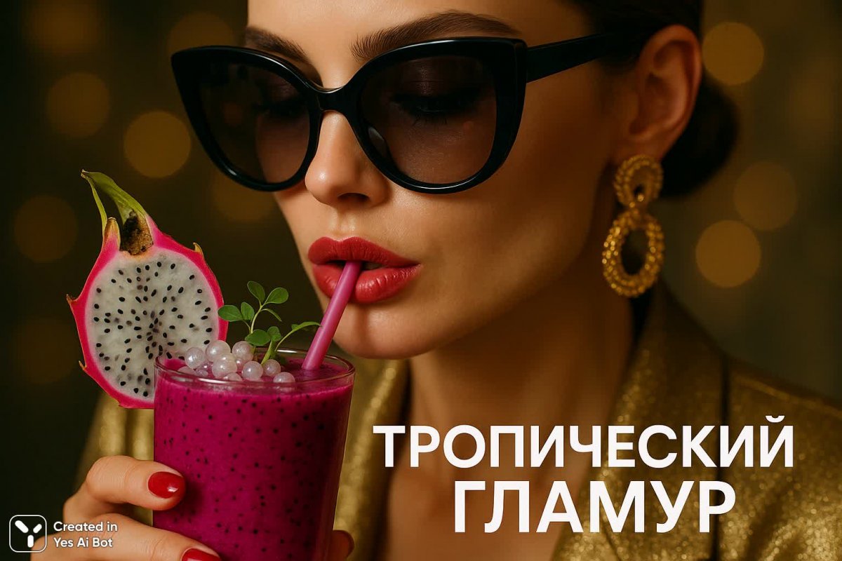 Изысканный портрет иконы стиля, наслаждающейся освежающим смузи из драгонфрута. Камера запечатлела мельчайшие детали: сочные фрукты, украшенные съедобными жемчужинами и нежными микрозеленями, массивные солнцезащитные очки, скрывающие взгляд и добавляющие образу загадочности. Эффект боке создает вокруг фигуры мягкое сияние, подчеркивая атмосферу роскоши и притягательности. Этот снимок – воплощение тропического гламура, где экзотические фрукты встречаются с высокой модой, а свет и тень играют в завораживающей симфонии. Кажется, будто запечатлен момент абсолютного блаженства и уверенности в себе. Композиция продумана до мелочей, каждый элемент призван подчеркнуть утонченный вкус и безупречный стиль объекта съёмки. Это не просто фотография – это визуальная поэзия о красоте, экзотике и беззаботном наслаждении жизнью. Насыщенные цвета фруктов контрастируют с нейтральным фоном, привлекая внимание к главному герою этой тропической истории. Снимок излучает энергию солнца, тепла и летнего настроения, призывая зрителя окунуться в атмосферу роскошного отдыха и незабываемых впечатлений. Идеальное сочетание моды, еды и искусства создает неповторимый образ, который запоминается надолго