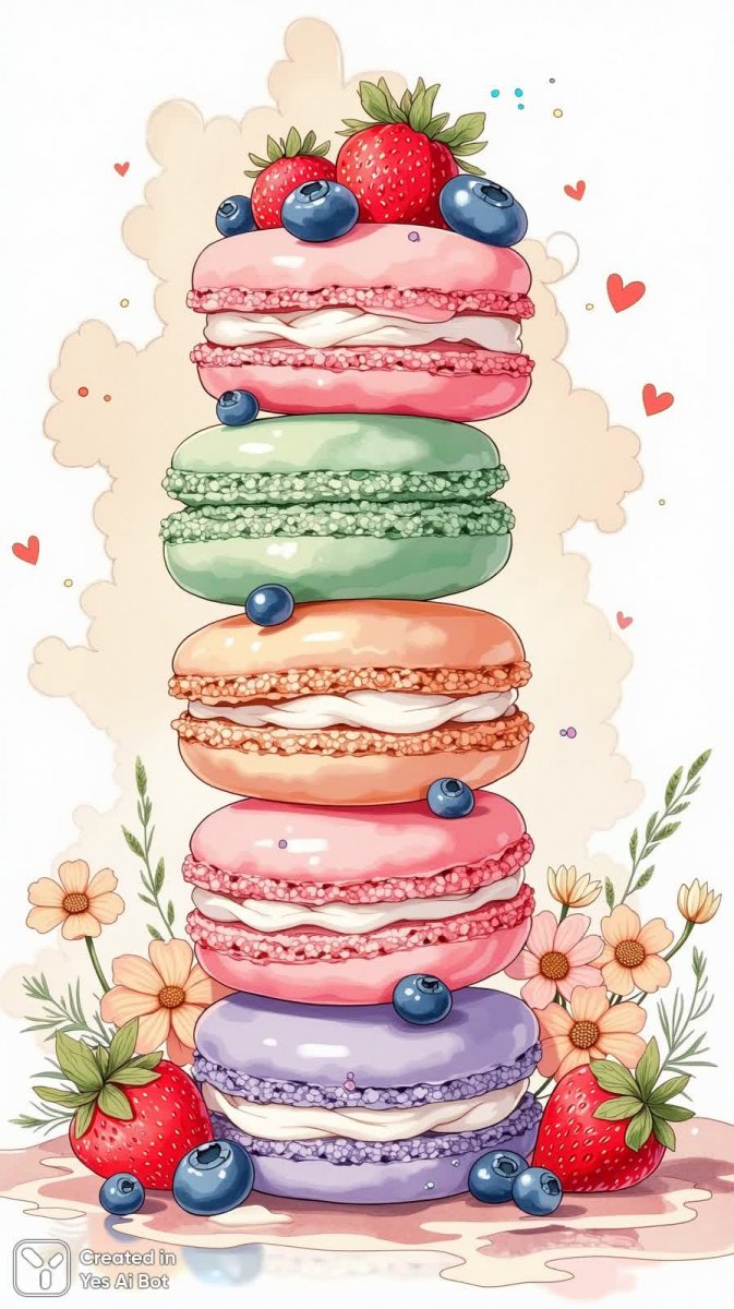 Завораживающая башня макарон в наивном стиле перенесет вас в мир сладких грез и беззаботного веселья. Нежная композиция из многослойных макарон пастельных оттенков – розового, зеленого и лавандового – создает ощущение легкости и воздушности. Сверху башню украшают сочные свежие ягоды: спелые клубники и голубые чернички, добавляющие яркие акценты в эту нежную палитру. Все это великолепие утопает в мягком облаке взбитых сливок, создавая ощущение сказочной легкости и нежности. Фон выполнен в пастельных тонах с еле заметными контурами цветов, усиливающими общее впечатление игривости и радости. Эта картина словно сошла со страниц красочной раскраски – она наполнена позитивом и оптимизмом, приглашая вас окунуться в мир безграничного воображения и сладких фантазий. Яркие цвета и простой стиль создают атмосферу детской непосредственности и искренней радости, а детализированная проработка каждого элемента подчеркивает мастерство исполнения. Эта картина станет прекрасным украшением для любого интерьера, наполняя его уютом и позитивной энергией. Она идеально подойдет для тех, кто ценит красоту в простых вещах и любит все яркое и жизнерадостное. Башня макарон – это не просто десерт, это воплощение мечты о сладкой жизни и беззаботном счастье