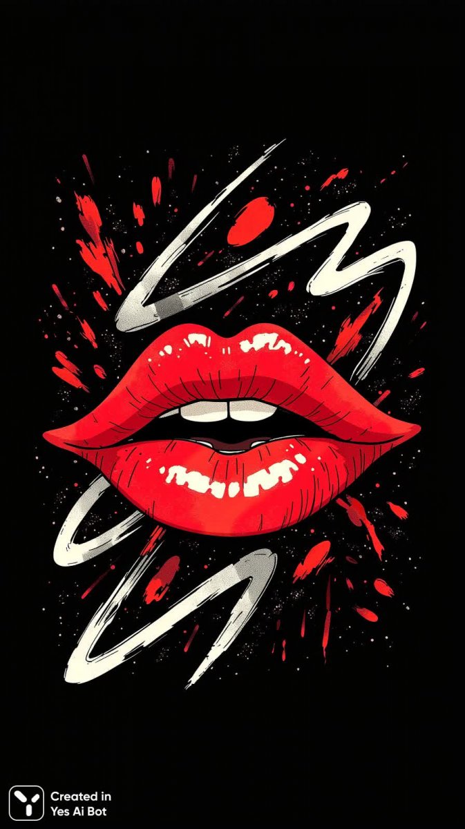 flux Яркие губы в графическом стиле с зигзагом. Изображение из нейронной сети Flux Ai