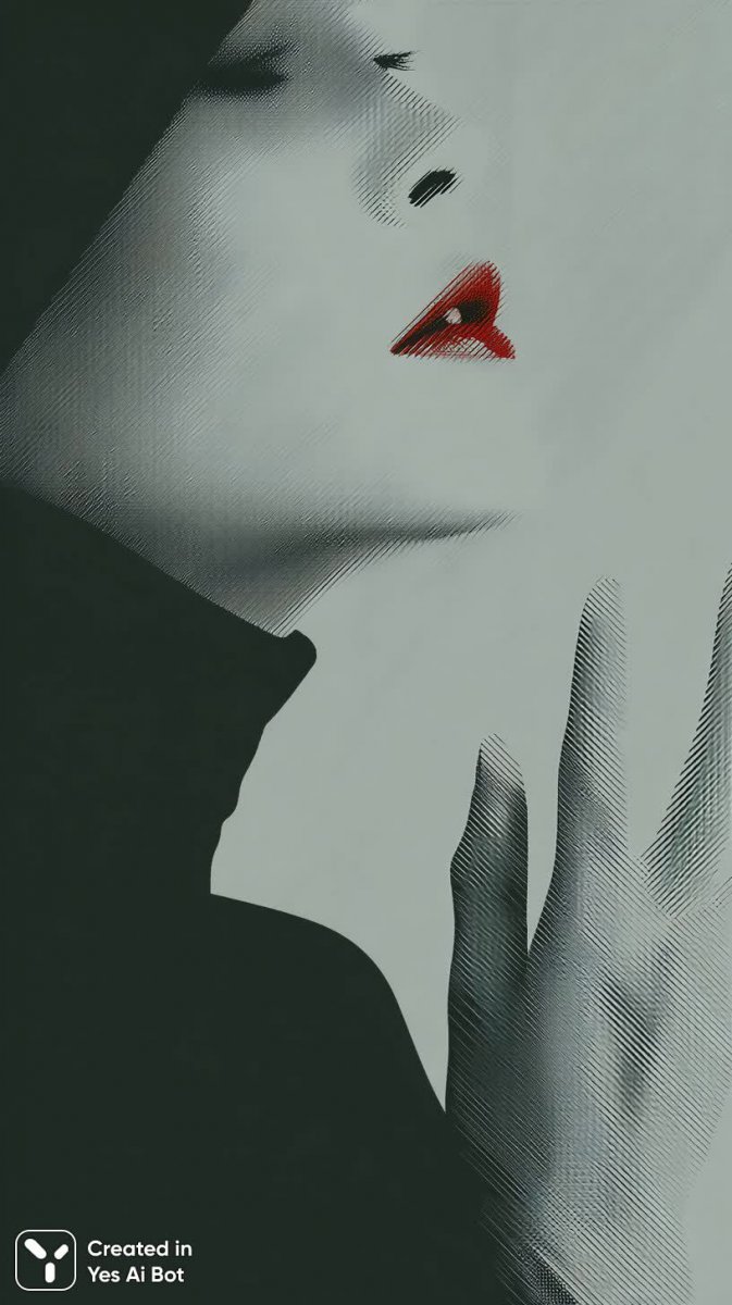 Изящный портрет женщины, выполненный в монохромной палитре, завораживает своей лаконичностью и выразительностью. Акцент на губах, подчеркнутых яркой красной помадой, притягивает взгляд и создает ощущение загадочности. Рука, грациозно поднятая вверх, добавляет динамики и намекает на внутреннее состояние модели – возможно, это жест задумчивости, удивления или легкого волнения. Минималистичный стиль изображения с использованием простых геометрических форм подчеркивает чистоту линий и элегантность композиции. Фоном служит смелый зигзагообразный узор, который привносит в работу элемент графичности и динамизма, контрастируя с мягкостью чертосброса лица. Вся картина пронизана атмосферой спокойствия и уверенности, демонстрируя красоту простоты и силу минималистичного подхода к изображению. Это не просто портрет, это визуальная поэзия, в которой каждый элемент играет свою роль, создавая гармоничное и запоминающееся впечатление. Фотография излучает утонченность и стиль, подчеркивая индивидуальность модели и мастерство фотографа в создании атмосферы. Композиция выдержана в строгих рамках минимализма, что позволяет зрителю сосредоточиться на деталях и почувствовать глубину изображения. Яркий акцент красной помады добавляет образу чувственности и драматизма, делая его еще более привлекательным и запоминающимся