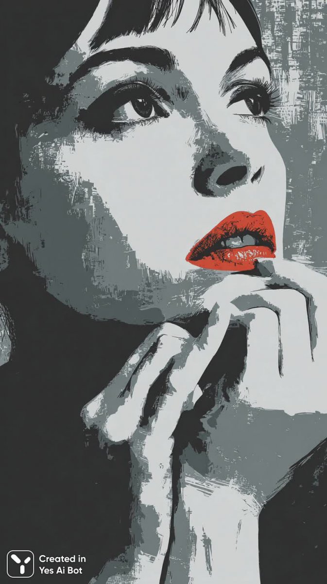 Элегантная черно-белая композиция, где акцент сделан на смелых алых губах и приоткрытом рте. Дизайн выдержан в стиле минимализма и примитивизма, используя простые геометрические формы для создания выразительного образа. Фон украшает ненавязчивый черно-белый вертикальный полосатый узор, добавляющий динамики и контраста. Легкое поднятие рук придает сцене нотку грации и непринужденности. Это визуальное воплощение современной эстетики, где лаконичность форм сочетается с силой цвета, создавая запоминающийся и стильный образ. Работа демонстрирует мастерское владение принципами дизайна, подчеркивая важность деталей и их гармоничного взаимодействия. Композиция излучает уверенность и минималистичную роскошь, оставляя простор для интерпретации и вызывая эстетическое наслаждение. Внимание к деталям и тщательный подбор цветовой палитры делают это изображение по-настоящему уникальным и привлекательным для широкой аудитории, ценящей современное искусство и дизайн. Простота линий и четкость форм создают эффект чистоты и порядка, что делает этот визуальный образ идеальным для использования в различных проектах, требующих элегантности и лаконичности