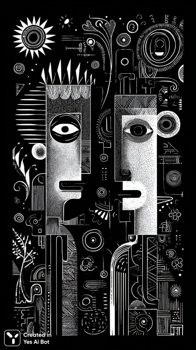 Завораживающая черно-белая иллюстрация, сотканная из абстрактных человеческих форм и сложнейших деталей, переносит зрителя в мир фантазий и сновидений. Каждая линия продумана до мелочей, создавая ощущение глубины и объема, словно трехмерное пространство застыло на холсте. Игривые элементы неожиданно сочетаются с геометрическими фигурами, а психоделические узоры добавляют изображению загадочности и динамизма. Драматическое освещение подчеркивает эмоциональность выражений, оживляя каждую деталь и создавая ощущение присутствия. Минималистичный графический дизайн позволяет акцентировать внимание на ключевых элементах композиции, а смелые линии придают работе энергию и выразительность. Вся картина пронизана атмосферой темного волшебства, словно портал в параллельный мир открывается перед нами. Общий фон, выполненный в насыщенном черном цвете, усиливает контраст и создает ощущение таинственности и глубины. Это не просто иллюстрация – это визуальное воплощение сновидения, полное символизма и скрытых смыслов, призывающее к размышлениям и погружению в безграничный мир воображения. Композиция отличается динамичностью, словно застывшая в движении, она захватывает взгляд и не отпускает до последнего взгляда на мельчайшие детали