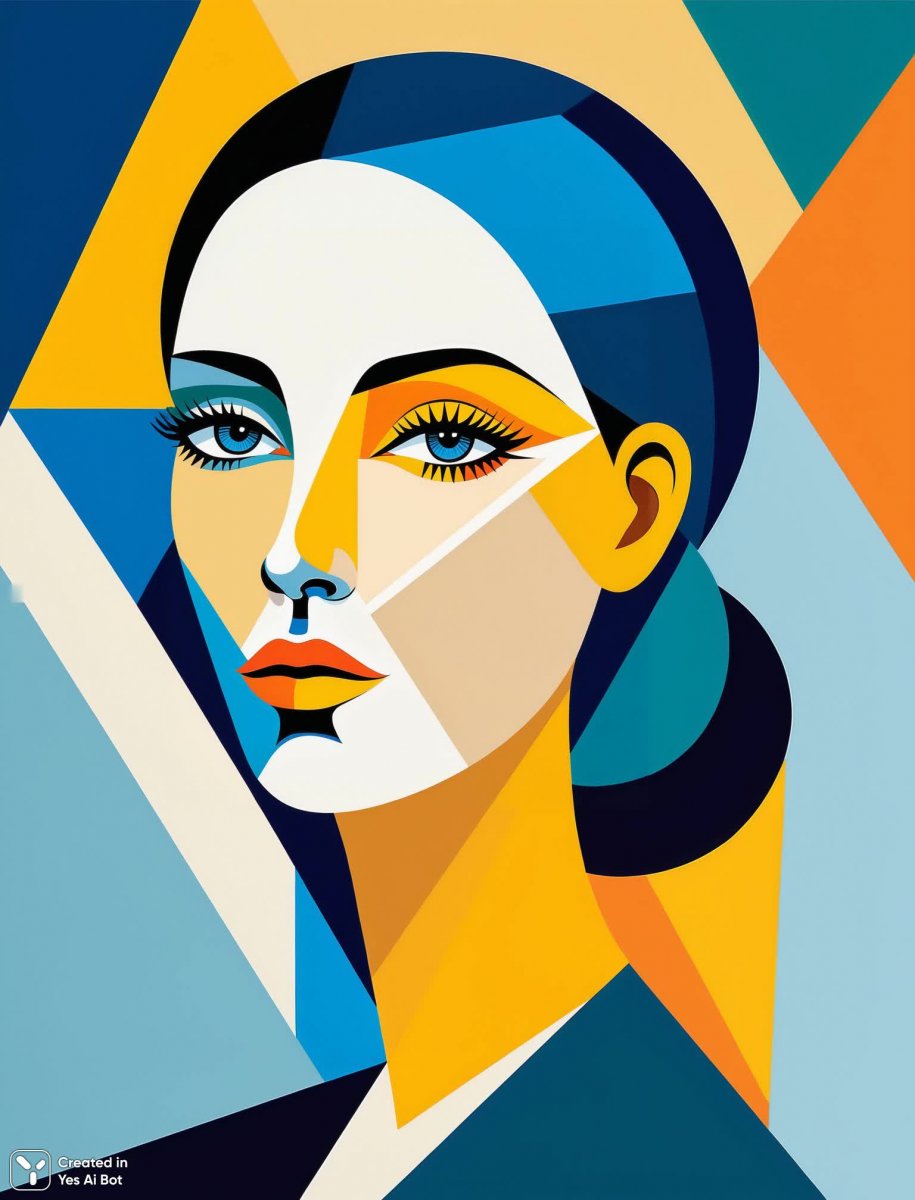 Яркий портрет: игра цвета и формы в стиле кубизма - Картинка, созданная ИИ Stable Diffusion