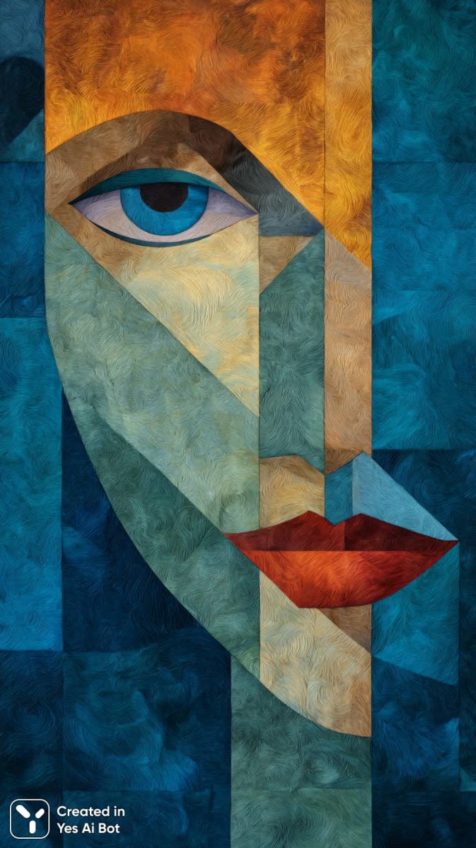 Яркая абстрактная картина, изображающая женское лицо, словно сотканное из геометрических фигур в насыщенных оттенках синего, оранжевого и зеленого цветов. Взгляд приковывают смелые алые губы, придающие портрету особую выразительность, и аккуратный заостренный нос. Фон картины выполнен в духе асимметрии и лоскутного шитья, создавая ощущение динамики и глубины благодаря вихрям линий и элементам минимализма. Картина выполнена с высоким качеством, что подчеркивается невероятно яркими и насыщенными цветами, которые словно оживают на полотне. Это не просто изображение, а визуальная симфония форм и красок, где каждая деталь тщательно продумана для создания уникального художественного образа. Портрет излучает энергию и современность, сочетая в себе элементы абстракции и узнаваемые черты женского лица. Картина станет прекрасным украшением интерьера, добавив нотку оригинальности и стиля в любое пространство. Ее яркие цвета и динамичные формы будут радовать глаз и вдохновлять на новые свершения. Это произведение искусства – настоящее воплощение креативности и мастерства художника, который сумел передать красоту и сложность женского облика через призму абстракции