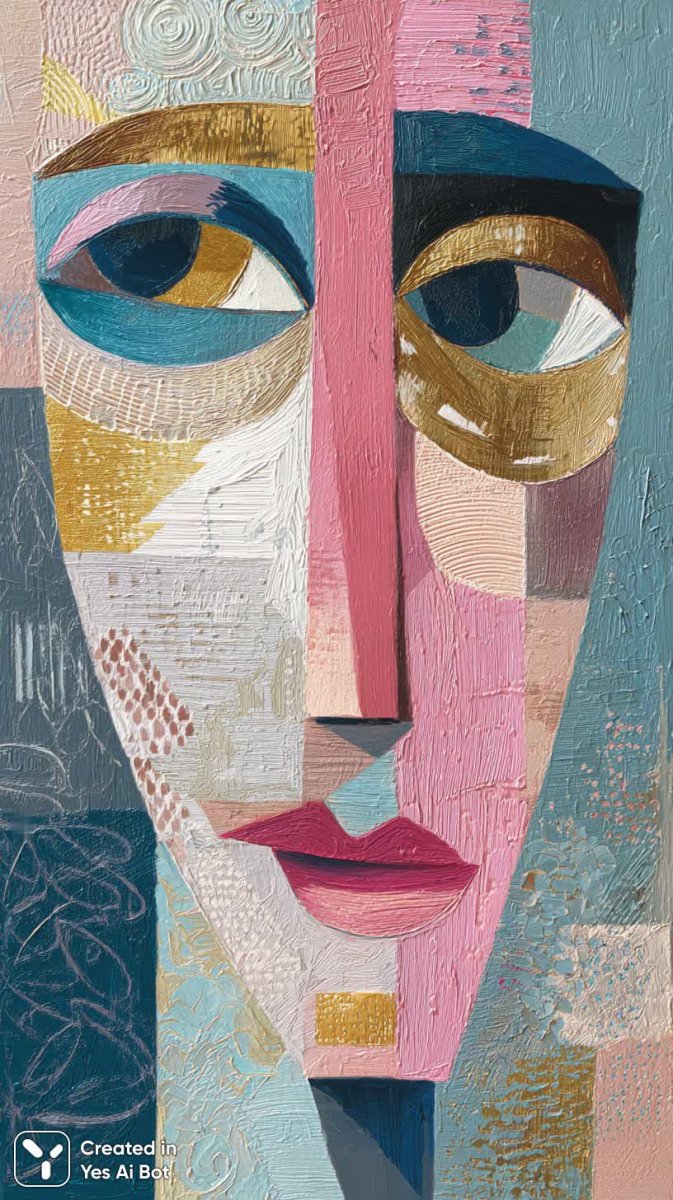 Яркая абстрактная картина лица представляет собой захватывающее визуальное исследование человеческих эмоций и внутреннего мира. Художник мастерски смешивает различные формы и линии в хаотичном, но гармоничном сочетании розового, бирюзового и золотого цветов, создавая ощущение динамики и энергии. Большие глаза, акцентированные мягкими изгибами, притягивают взгляд и выражают глубокую задумчивость или скрытую тоску. Фон картины насыщен асимметричными геометрическими узорами и смелыми текстурами, которые добавляют глубины и сложности композиции. Это не просто портрет — это визуальная интерпретация сложных чувств, передающая внутренний мир человека через призму абстрактного искусства. Картина обладает мощной эмоциональной силой и приглашает зрителя к размышлению о природе человеческих эмоций и их многогранности. Использование ярких цветов и динамичных форм создает ощущение движения и трансформации, словно отражая изменчивость внутреннего мира. Эта работа – уникальное сочетание абстракции и портретного жанра, демонстрирующее талант художника в создании выразительных и запоминающихся образов. Картина идеально подойдет для тех, кто ценит современное искусство и ищет оригинальный элемент декора для своего интерьера