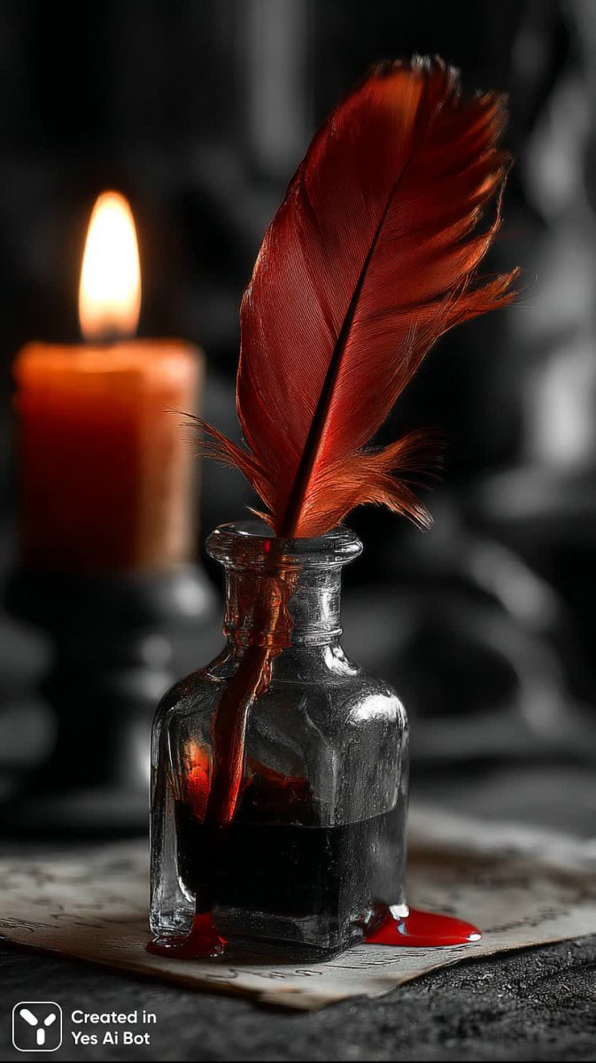 Изысканный натюрморт переносит в эпоху классической элегантности и тонкой каллиграфии. В центре внимания – перо из красного перья, лежащее рядом со старинной бутылью чернил с хрустальной пробкой. Теплый свет мягко освещает сцену, подчеркивая фактуру состаренного пергамента, на котором выведены изящные письмена. Композиция излучает атмосферу утонченности и интеллектуального поиска, напоминая о временах рукописных посланий и долгих размышлениях над каждым словом. Детализированное изображение передает ощущение истории, запечатлев момент творчества и вдохновения. Кажется, будто можно почувствовать аромат старого пергамента и услышать скрип пера, оставляющего на нем свой след. Это не просто фотография, а окно в прошлое, приглашающее зрителя прикоснуться к миру изысканных традиций и вечной красоты слова. Натюрморт воплощает эстетику винтажа, где каждая деталь имеет значение, создавая гармоничное сочетание света, тени и текстуры. Идеально подходит для тех, кто ценит классический стиль, историю и искусство письма