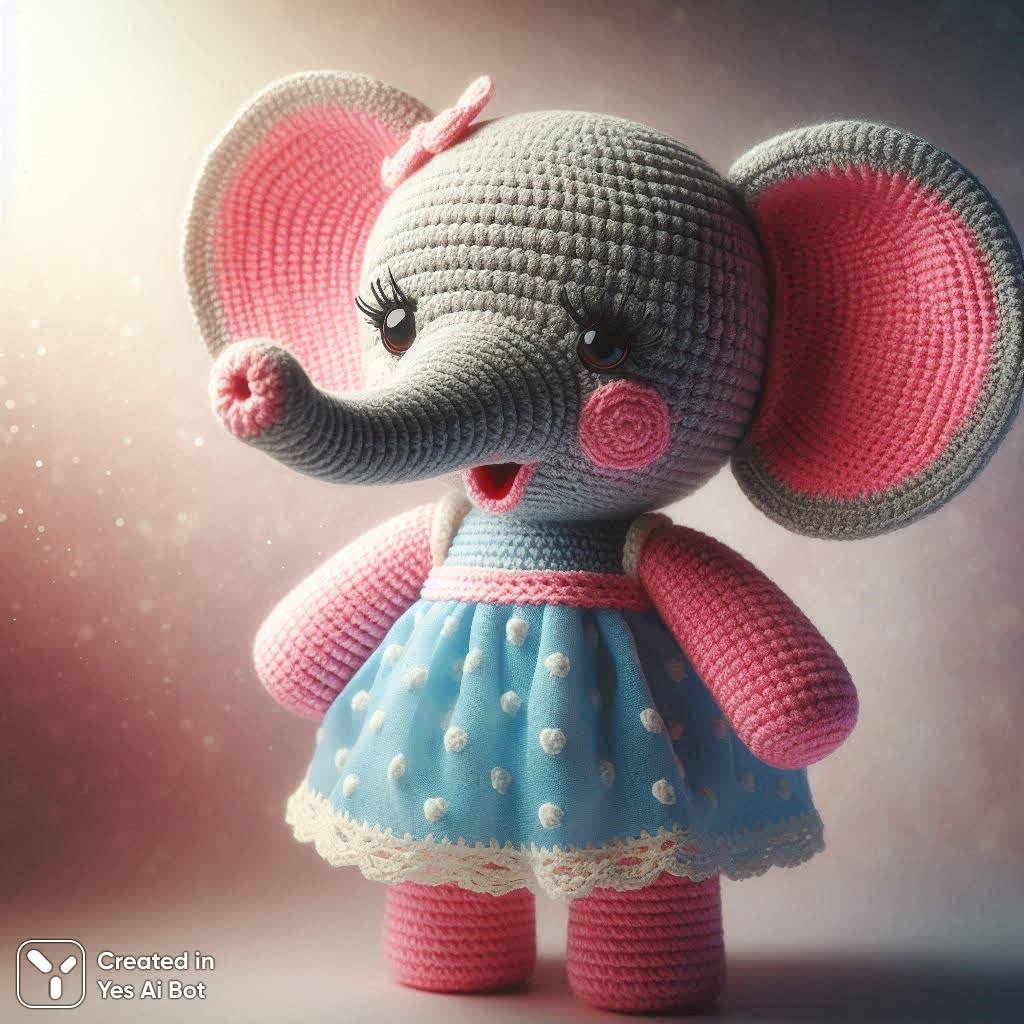 Стильный слон крючком в розово-голубом платье - Картинка из нейросети Dalle-3