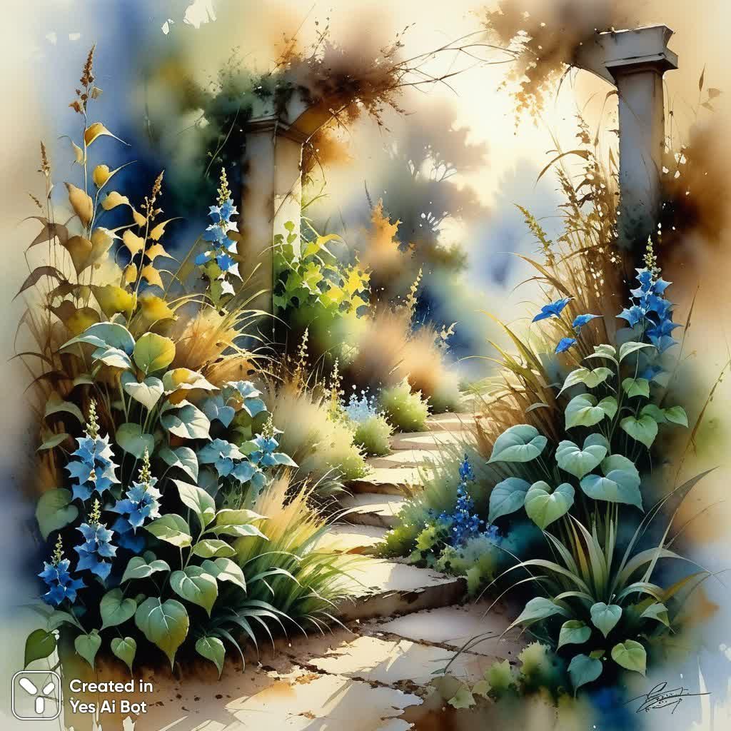 stable diffusion Заброшенный сад в стиле Ли Богла: акварельный туман и приглушенные тона. Картинка из нейросети Stable Diffusion
