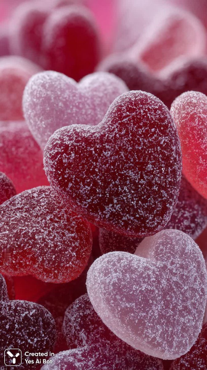 Романтика сладостей: яркие сердечки из сахара на розовом фоне - Пример работы нейросети Midjourney