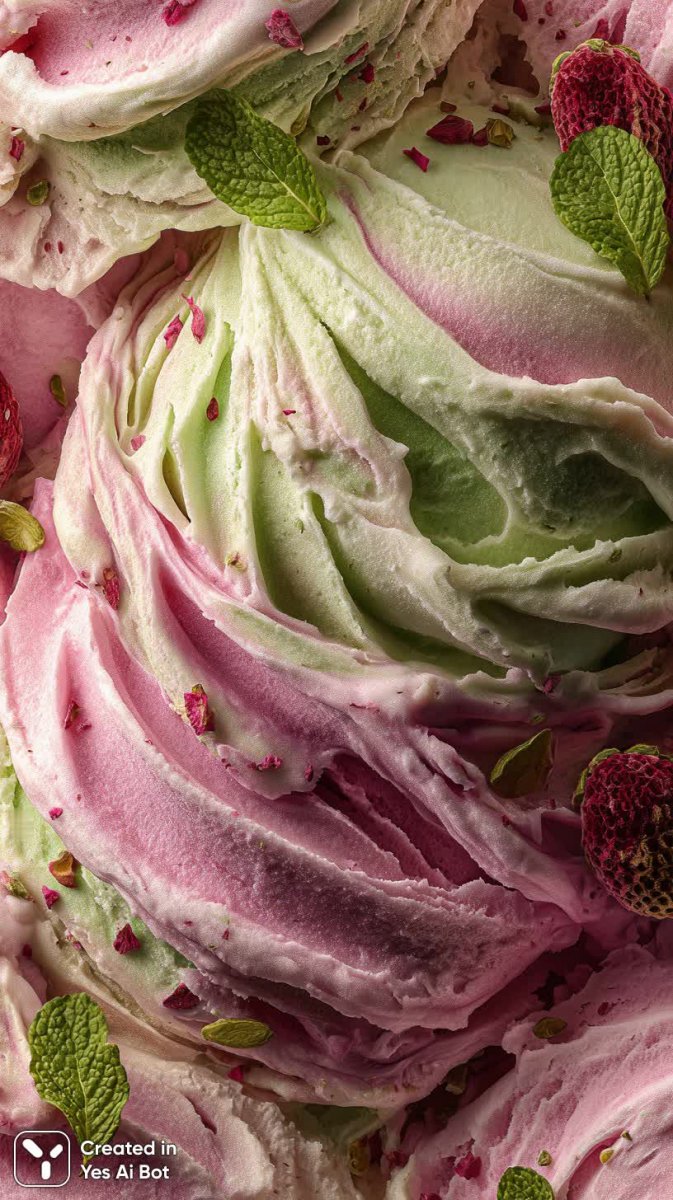 midjourney Тающее наслаждение: розовое и зелёное мороженое в летнем раю. Изображение из нейросети Midjourney