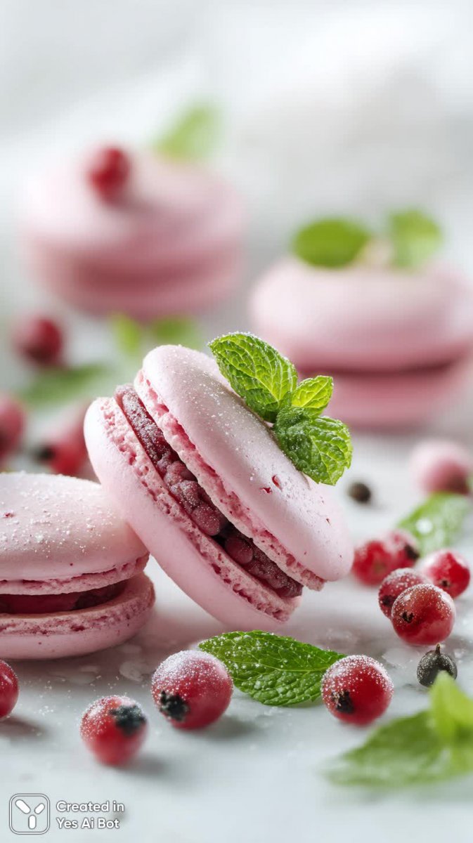 midjourney Изысканная палитра: макаруны и свежие ягоды в нежной композиции. Генерация из нейросети Миджорни