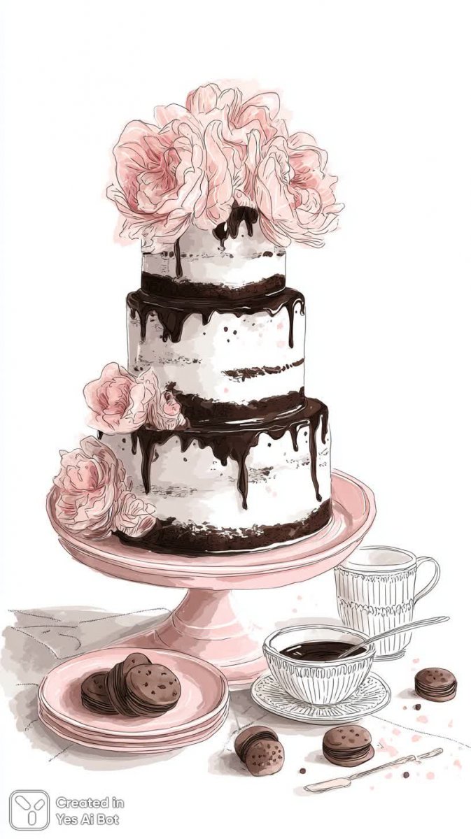 Нежная и игривая иллюстрация в стиле Zentangle представляет собой трехъярусный торт на розовой тарелке – воплощение кондитерского совершенства и праздничного настроения. Каждый ярус украшен пышным розовым кремом, создающим ощущение легкости и воздушности. Вершина торта венчает крупный цветок с переплетающимися лепестками, словно сотканный из мечтаний и сладостей. Каскад шоколадного соуса элегантно стекает по ярусам, добавляя нотку чувственности и соблазна. Фон выполнен в виде белоснежной скатерти с миской, полной аппетитных печений – завершающий штрих к этой волшебной композиции. Иллюстрация пронизана духом беззаботности и детской радости, вызывая улыбку и желание насладиться моментом. Акцент на черно-белой гамме с ярким розовым акцентом придает изображению современный и стильный вид, делая его идеальным украшением для кулинарных блогов, приглашений на дни рождения или просто приятным напоминанием о сладких моментах жизни. Это не просто торт – это произведение искусства, созданное для того, чтобы дарить радость и вдохновение каждому зрителю. Идеально подходит для тех кто любит кондитерское искусство и винтажный стиль