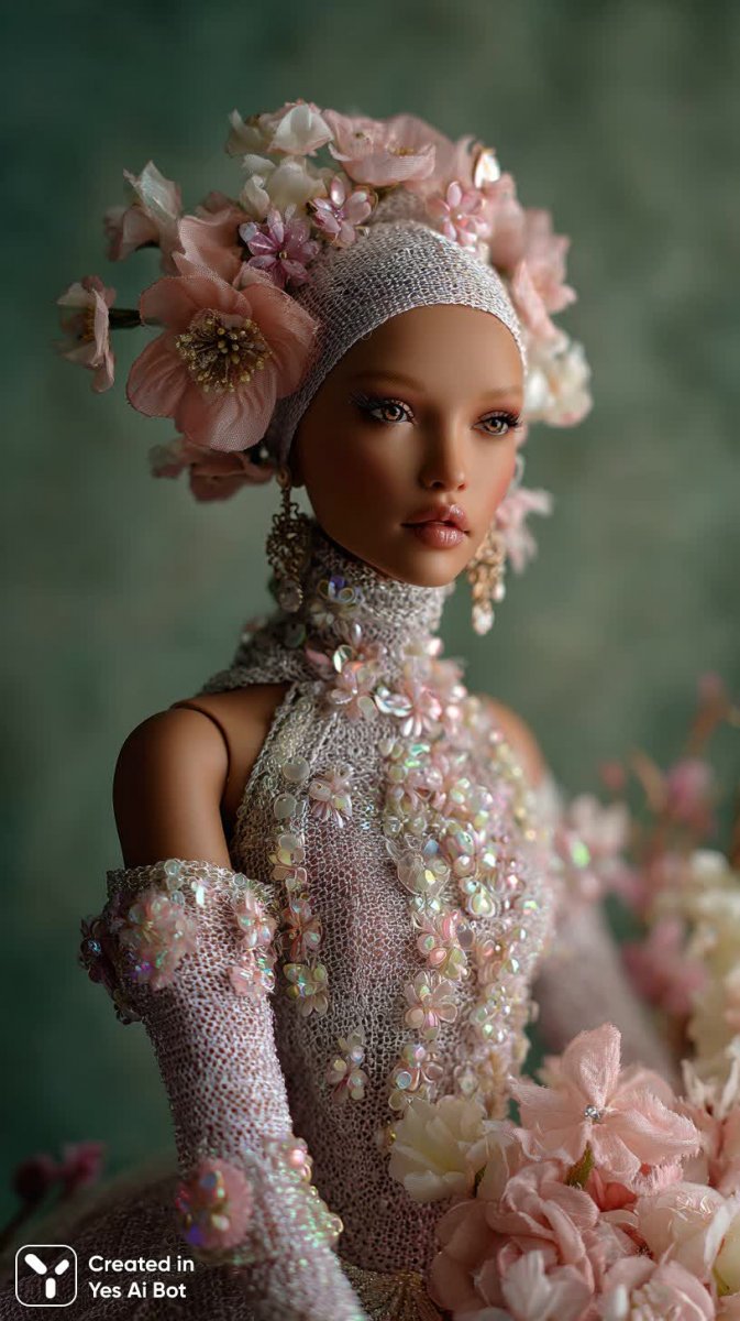 Элегантная кукла ручной работы в вечернем платье - Пример генерации нейросети Миджорни