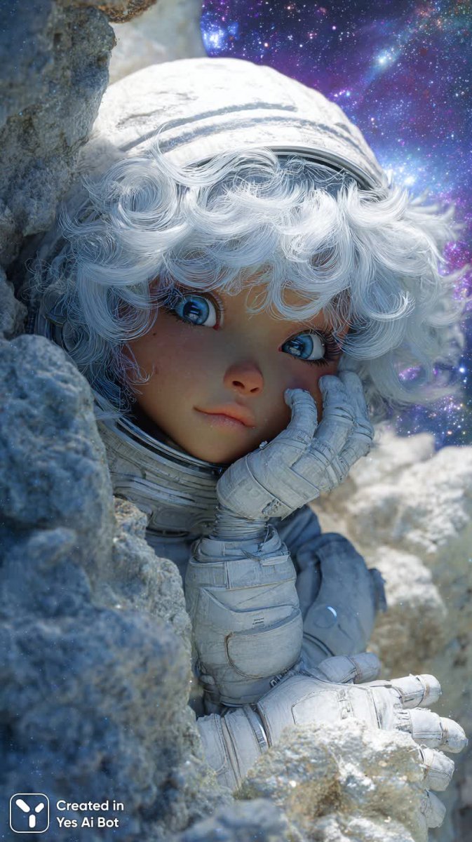 Невероятно трогательный образ маленькой девочки в скафандре, сидящей на груде камней и держащей в руках крошечную голубую планету, излучающую мягкое свечение. Это завораживающая космическая иллюстрация, выполненная в 3D-графике с потрясающей детализацией. Лицо малышки очаровательно милое, с большими выразительными глазами, а ее внешность напоминает лунный свет – нежная и прекрасная. Изображение идеально подходит для профиля, создавая впечатление хрупкости и загадочности. Голубое сияние планеты, словно миниатюрная версия Земли, добавляет картине особую глубину и символизм, намекая на заботу о нашей планете и ее будущем. Это произведение искусства – настоящий шедевр, сочетающий в себе элементы детской невинности и космической фантазии, создавая неповторимую атмосферу волшебства и умиления. Детализация настолько высока, что кажется, будто можно почувствовать тепло от голубого свечения и увидеть отражение звезд в больших глазах маленькой девочки. Яркое и запоминающееся изображение станет прекрасным украшением для любого профиля, подчеркивая индивидуальность и любовь к космосу. Это не просто картинка – это история о надежде, красоте и ответственности за наш общий дом