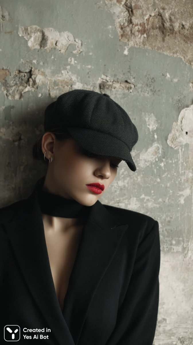 Завораживающий образ женщины, воплощенный в визуальной композиции, приковывает внимание своим контрастом и глубиной. Черный наряд с головным убором создает графичную основу для акцента на ярко-красной помаде – смелом заявлении, выделяющемся на фоне хаотичной мозаики лиц. Это не просто портрет, а исследование эмоций и идентичности, где каждый взгляд, каждая гримаса становится частью сложной истории. Трещины на заднем плане добавляют текстуру и символизм, намекая на хрупкость и изменчивость человеческой природы. Композиция передает ощущение динамики и многослойности, приглашая зрителя к размышлению о красоте, уязвимости и силе выражения. Визуальный ряд мастерски сочетает в себе элементы моды, искусства и психологического портрета, создавая мощное впечатление. Это визуальная поэма о женственности, самовыражении и несовершенстве мира, где даже трещины могут стать частью прекрасного целого. Яркий макияж становится символом уверенности и непокорности, а разнообразие лиц на заднем фоне – отражением богатства человеческого опыта. Кажется, будто запечатлен момент перехода, когда привычный мир распадается, открывая новые горизонты для самопознания и творчества