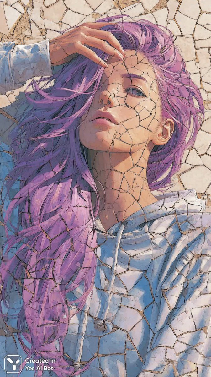 Задумчивая девушка в худи, словно сошедшая с полотен мастера Эйзан Кикукавы, запечатлена в моменте покоя на песчаном берегу. Ее волосы цвета аметиста мягко развеваются под ласковым солнцем, создавая контраст с ярким узором, напоминающим осколки разбитой фарфоровой вазы и замысловатую мозаику. Влияние стиля 'син ханга' придает изображению тонкую элегантность и традиционную японскую эстетику. Художественный почерк Алессандро Пауттассо проявляется в детальной прорисовке лица и выразительности взгляда, передающем легкую меланхолию и внутреннюю сосредоточенность. Вдохновленная студией Ufotable, работа выполнена в характерном аниме стиле с акцентом на динамику света и тени, создавая ощущение глубины и реалистичности. Картина словно оживает благодаря игре солнечных лучей на поверхности песка и отражениям в глазах девушки, погружая зрителя в атмосферу безмятежности и красоты момента. Эта работа, безусловно, заслуживает внимания и может стать настоящим хитом на платформе Pixiv, сочетая в себе элементы уличного искусства и классической живописи