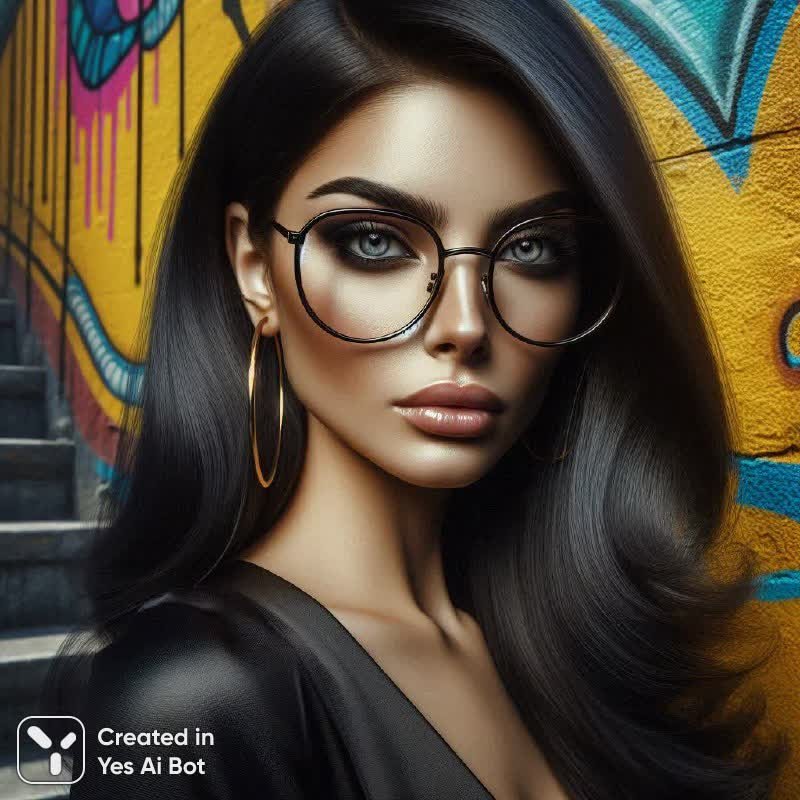 Яркий портрет современной женщины, воплощающий смелое сочетание классической элегантности и бунтарского духа уличного искусства. Модель с короткой темной стрижкой, подчеркивающей четкость линий лица, одета в лаконичный черный топ, что создает контраст с ярким фоном. Большие круглые очки с оригинальным сияющим дизайном добавляют образу нотку футуристичности и загадочности, притягивая взгляд и акцентируя внимание на выразительном взгляде, направленном прямо в камеру. Фон представляет собой динамичную композицию из граффити на ярко-желтой стене, что создает ощущение энергии и движения. Стилистика изображения отражает гармоничное переплетение поп-арта с элементами авангарда, демонстрируя смелый эксперимент с цветом, формой и текстурой. Это визуальное исследование сочетает в себе строгость и игривость, серьезность и легкость, создавая запоминающийся образ уверенной в себе женщины, которая не боится выражать свою индивидуальность и выделяться из толпы. Фотография передает атмосферу креативности и инноваций, подчеркивая связь между модой, искусством и современной культурой, являясь ярким примером визуальной коммуникации, способной вызывать сильные эмоции и вдохновлять на новые свершения. Каждая деталь продумана до мелочей, создавая целостный и гармоничный образ, который запоминается надолго