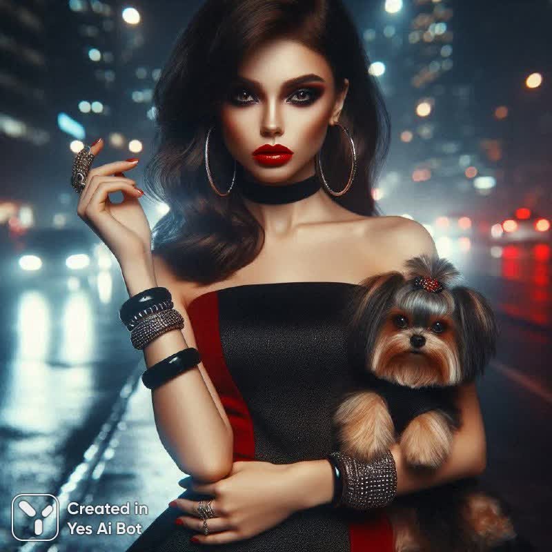 Ночная городская панорама оживает в этом профессиональном портрете, где красота и дерзость сливаются воедино. В центре внимания – эффектная девушка, воплощающая образ современной нимфоманки с ярким характером. Её смелый наряд – авангардное мини-платье насыщенных чёрного и красного цветов – подчёркивает соблазнительные формы и приковывает взгляды. Яркие губы цвета фуксии и чувственный смоки-айз добавляют образу драматизма и загадочности, а крупные серьги-кольца и массивные браслеты акцентируют внимание на её уверенности и стильности. Неожиданный аксессуар – хот-дог в руке – привносит нотку игривости и лёгкости, нарушая привычные рамки гламура. В кадре чувствуется едва уловимый ретро-вайб, который придаёт фотографии особый шарм и глубину. Атмосфера пронизана романтикой и предвкушением чего-то волшебного, создавая неповторимую ауру притягательности и соблазна. Это не просто фотография – это история о сильной, независимой женщине, которая наслаждается жизнью и не боится быть собой в мерцающем свете ночного города, оставляя после себя шлейф загадочности и желания. Камера запечатлевает её неповторимую красоту и харизму, делая этот портрет настоящим произведением искусства