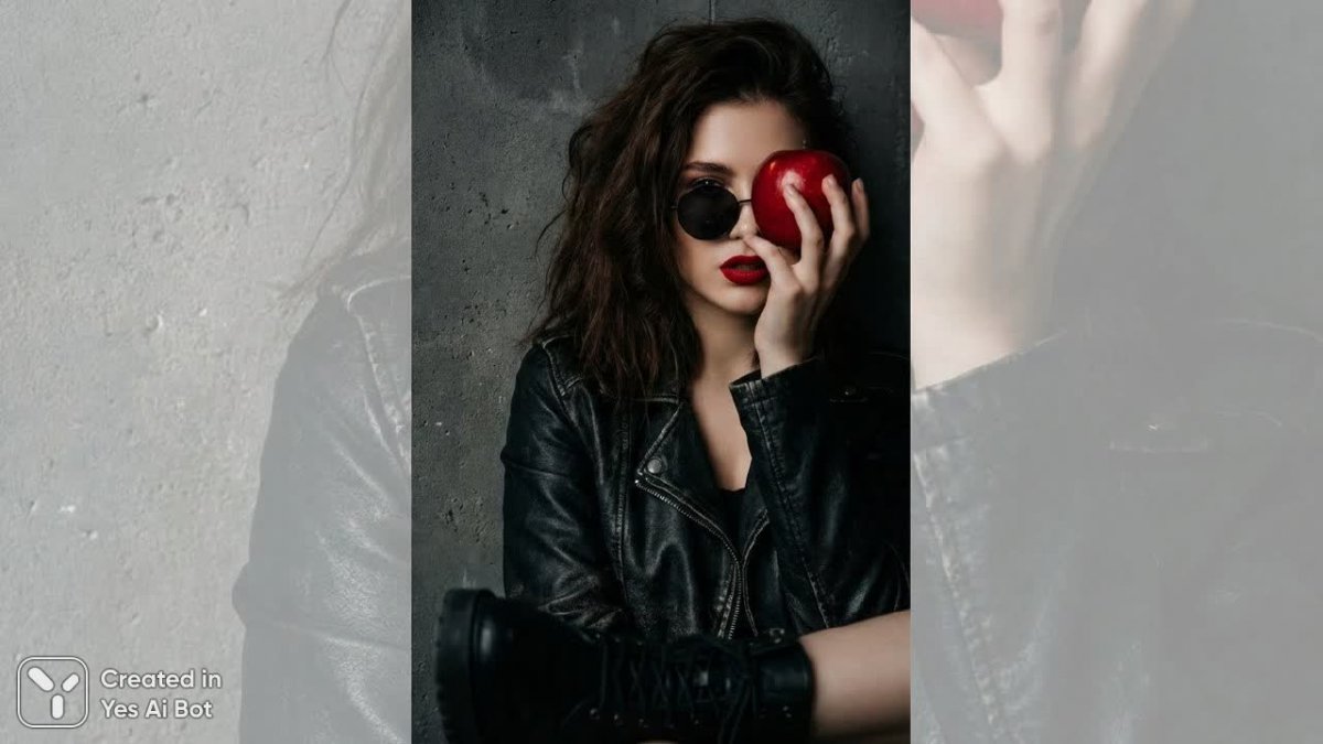 Загадочная красота в стиле гранж – вот что передает этот портрет. Молодая женщина с длинными каштановыми волосами и яркой красной помадой становится объектом внимания, слегка прикрывая лицо румяным яблоком. Ее дерзкий образ дополняют массивные черные ботинки и стильные солнцезащитные очки, создающие атмосферу бунтарства и уверенности в себе. Темно-серый фон подчеркивает контрастность кадра, акцентируя внимание на деталях внешности модели и ее выразительном взгляде. Это не просто фотография – это история, рассказанная через визуальные образы, передающая настроение смелости, независимости и легкой провокации. Взгляд, устремленный сквозь темные линзы очков, намекает на внутреннюю силу и непоколебимость характера. Сочетание классической красоты с элементами панк-культуры делает этот портрет по-настоящему уникальным и запоминающимся. Он словно запечатлевает мгновение непокорности и свободы самовыражения, приглашая зрителя задуматься о многогранности женской натуры и ее способности сочетать в себе хрупкость и силу одновременно. Энергия молодости и бунтарский дух вибрируют в каждом пикселе этого снимка, делая его настоящим произведением искусства