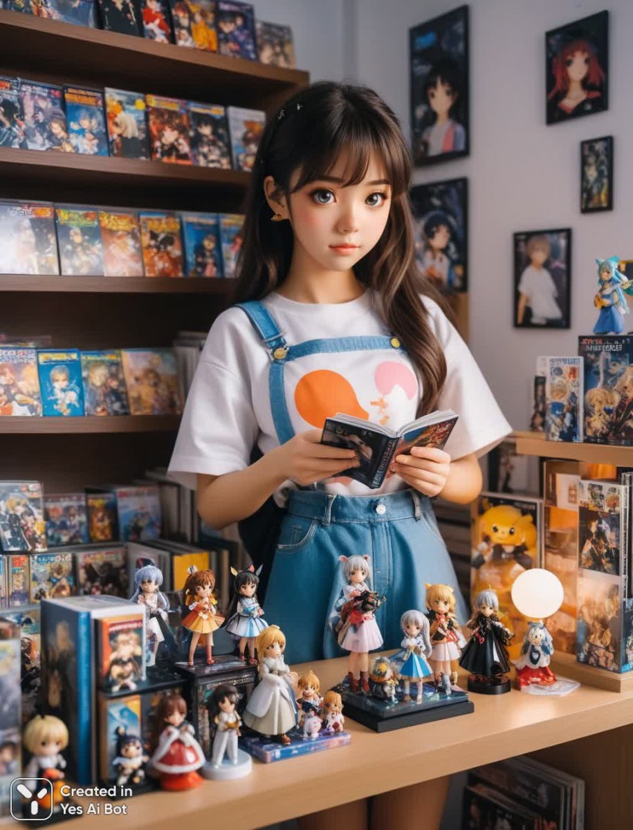 В футуристичном мире юная коллекционерша окружена сокровищами своей страсти – фигурками аниме. Её комната – это настоящий храм японской анимации, где каждая деталь пропитана любовью к любимым героям. На полках бережно расставлены фигурки, словно произведения искусства, демонстрирующие её увлечение и вкус. В руках девушка нежно держит очередную находку, рассматривая мельчайшие детали с трепетом и восхищением. Постеры с культовыми персонажами украшают стены, создавая атмосферу волшебства и погружая в мир любимых сериалов. На прикроватной тумбочке аккуратно сложены журналы и книги – верные спутники долгих вечеров, посвященных изучению аниме-культуры. Эта комната - отражение души девушки, её увлечения и безграничной любви к миру аниме, где каждый предмет имеет свою историю и значение. Здесь время замирает, позволяя насладиться красотой и очарованием любимых героев, а коллекция продолжает расти, обещая новые открытия и приключения в захватывающем мире японской анимации. Окружающий её мир – это не просто комната, это портал в волшебный мир аниме, где оживают мечты и воплощаются фантазии юной коллекционерши, окруженной любимыми героями и сокровищами своей страсти