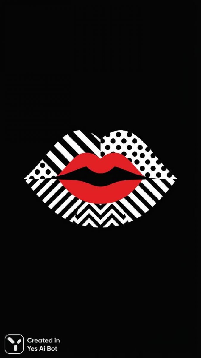 Яркая иллюстрация губ, выделяющаяся насыщенным красным акцентом на фоне графичного контраста чёрных и белых полос. Композиция выстроена по центру изображения, создавая эффект сбалансированной симметрии. В работе используются простые плоские формы, характерные для минималистичного стиля, что придаёт изображению лаконичность и современный вид. Чёрный фон усиливает визуальное воздействие красного цвета и чёткости линий, формируя смелый и запоминающийся образ. Общий стиль работы акцентирует внимание на дерзком сочетании простоты и графичности, создавая эффектную игру паттернов и форм. Изображение обладает выразительной силой, несмотря на кажущуюся простоту исполнения, и способно привлекать внимание своей смелостью и минималистичной эстетикой. Это визуально насыщенное произведение искусства, которое одновременно элегантно и провокационно, демонстрируя мастерство в создании стильных графических решений с использованием ограниченного числа элементов. Акцент сделан на чистоте линий и контрастности цветов для достижения максимального визуального эффекта