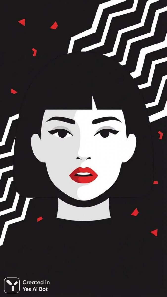 Изящный черно-белый портрет женщины в современном минималистичном стиле завораживает своей простотой и элегантностью. Лицо, представленное в виде плоской иллюстрации из простых геометрических форм, излучает спокойствие и уверенность. Небольшое приоткрытие рта добавляет образу загадочности, а яркий красный помада становится акцентом, привлекающим внимание к губам. Волосы, аккуратно уложенные в гладкий боб, подчеркивают лаконичность силуэта. Минимальный макияж позволяет сосредоточиться на выразительности лица и общей композиции изображения. Фон выполнен в черном цвете с белыми зигзагообразными линиями, создающими динамичный контраст и визуальную глубину. Детали красного цвета тонко прорисованы, добавляя портрету яркости и живости. В целом работа представляет собой стильное сочетание графики и портретной живописи, демонстрирующее мастерство художника в создании современных и запоминающихся изображений. Это произведение искусства идеально подойдет для тех, кто ценит минимализм, элегантность и современный дизайн. Оно способно украсить любое пространство, добавляя ему нотку изысканности и утонченности. Идеально для оформления веб-сайтов, социальных сетей или печатной продукции, где требуется лаконичный и стильный визуальный образ