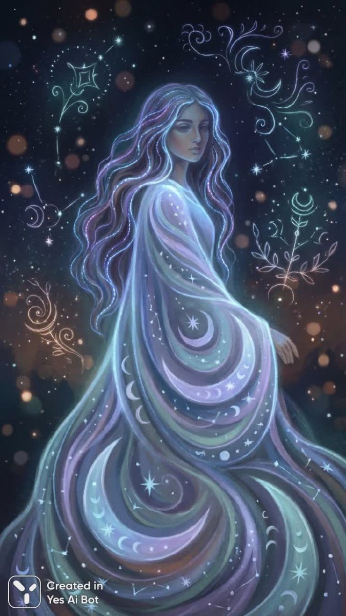 Завораживающее световое изображение, где в центре композиции предстает лунная дева славянского облика. Она облачена в роскошное платье, сотканное из множества полумесяцев и звезд, словно воплощение небесной красоты и мистики. Длинные волосы, ниспадающие волнами, подсвечены мягким синим и лиловым свечением, создавая ощущение неземной легкости и грации. На фоне простирается ночное небо, украшенное узорами народных созвездий – древними символами, передающими мудрость поколений. Деликатная светящаяся филигрань добавляет изображению особую изысканность и воздушность. Цветовая палитра выдержана в холодных тонах, что подчеркивает загадочность и умиротворение сцены. Работа выполнена с использованием компьютерной графики, детализация поражает воображение – разрешение 1024K позволяет рассмотреть каждую мелочь, каждый отблеск света на ткани и волосах. Это произведение искусства погружает зрителя в мир сказки и волшебства, где переплетаются красота природы и богатство славянской культуры. Изображение излучает гармонию и спокойствие, напоминая о вечной связи человека с космосом. Светящаяся дева становится символом надежды и вдохновения, а ее небесный наряд – воплощением мечты о прекрасном