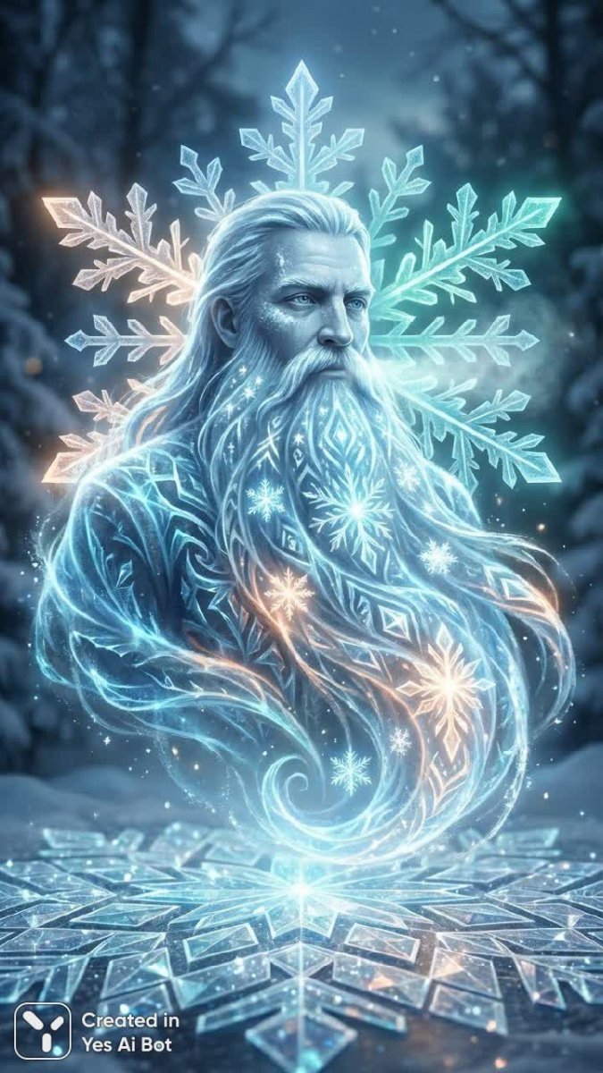 Морозко: сияние льда и славянская зимняя сказка в кристаллах света - Результат генерации нейросети Nano Banana
