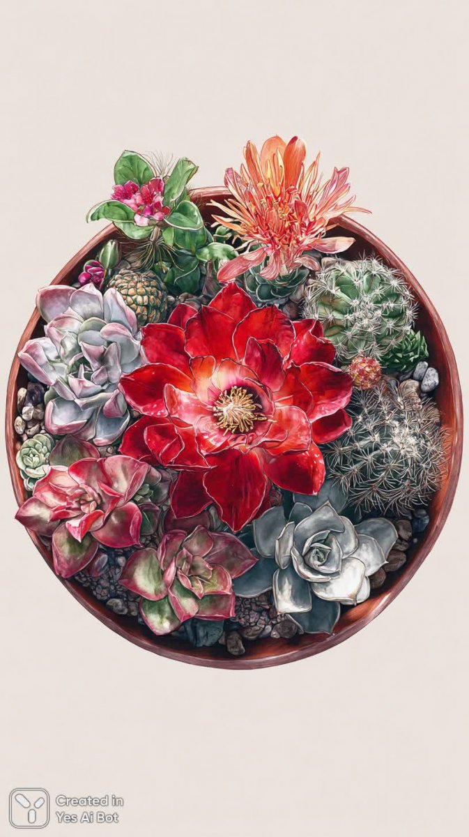 Изысканная композиция, где мир суккулентов и кактусов раскрывается во всей своей красе. Фотография выполнена в профессиональном стиле с видом сверху, демонстрируя разнообразие форм и оттенков этих удивительных растений, размещенных в стильном лечаза-флорариуме. Идеально чистый светлый фон подчеркивает детализацию и текстуру каждого растения, создавая ощущение воздушности и легкости. В центре внимания – очаровательный рыжий кот, с любопытством принюхивающийся к яркому красному кактусу. Мягкое студийное освещение акцентирует богатство текстур, добавляя изображению реалистичности и тепла. Эта картина – воплощение гармонии природы и домашнего уюта, сочетающее в себе эстетическую привлекательность и тонкую наблюдательность. Это не просто фотография растений, а целая история о взаимодействии живых существ и красоте окружающего мира, запечатленная с мастерством профессионального фотографа. Идеальный выбор для тех, кто ценит изысканность, природную элегантность и необычные визуальные решения. Кажется, что время остановилось в этом моменте, позволяя зрителю насладиться каждым деталем этой волшебной сцены