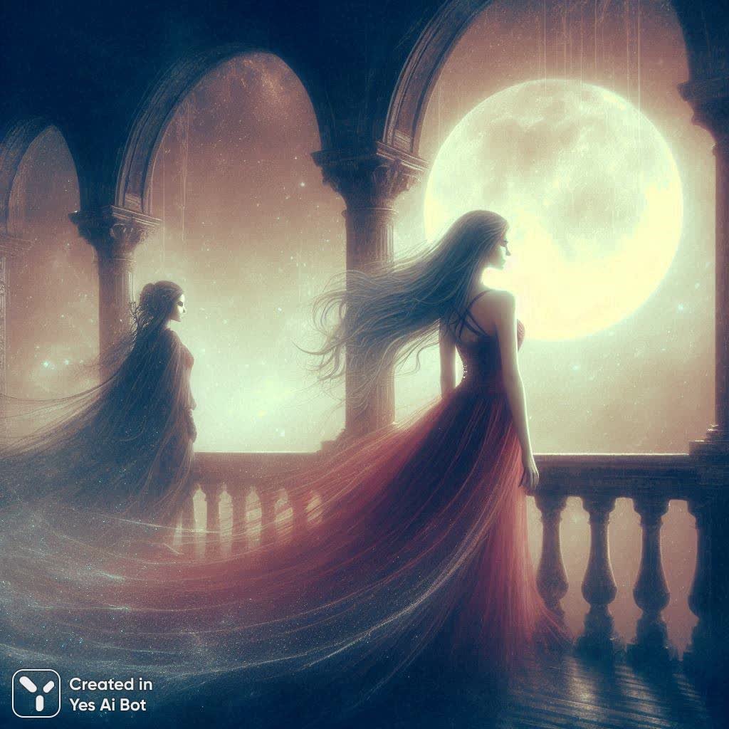Ночная драма на балконе: страсть и напряжение в лунном свете - Генерация изображения с помощью нейросети Dalle