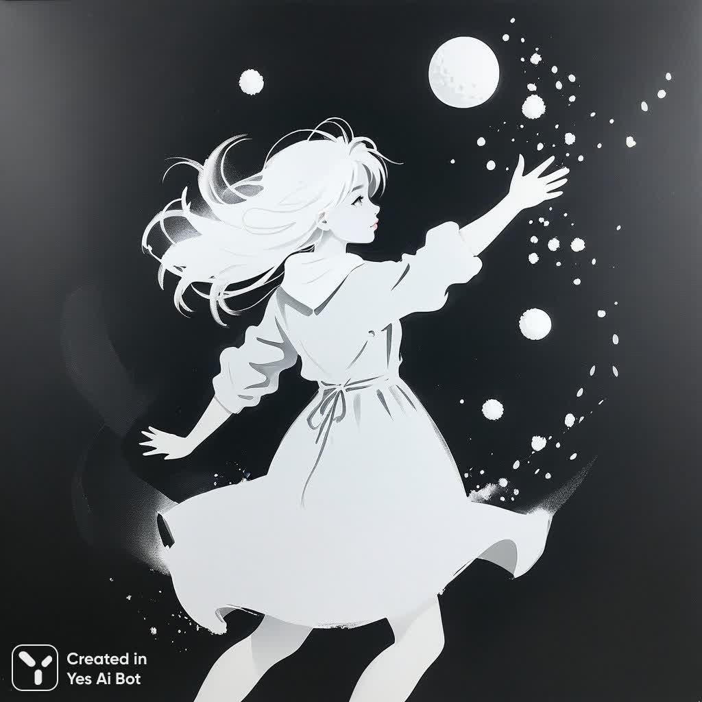 Нежная акварельная зарисовка, сотканная из минимализма и зимней хрупкости. На тёмно-сером фоне словно материализовалась девушка в белоснежном одеянии с волосами цвета первого снега. Её фигура – воплощение чистоты и безмятежности, а действие – импульсивный выпад в сторону зрителя: она бросает ком снега прямо в кадр, нарушая тишину и создавая ощущение внезапности. Изображение пронизано лёгкой меланхолией и эфемерностью, словно запечатлён момент ускользающей красоты. Отсутствие ярких деталей и преобладание светлых тонов придаёт работе воздушность и легкость, акцентируя внимание на движении и эмоции. Это не просто иллюстрация, а скорее мимолётное видение, ощущение зимнего волшебства, застывшее в белом цвете на фоне холодной серости. Художественный прием минимализма позволяет зрителю домыслить детали и погрузиться в атмосферу тишины и покоя, ощущая дыхание зимы и неуловимую грацию девушки, играющей со снегом. Работа вызывает чувство умиротворения и лёгкой грусти одновременно, напоминая о быстротечности времени и красоте простых вещей. Это визуальный гимн зиме в её самой чистой и невинной форме – незаконченная зарисовка, полная поэзии и скрытых смыслов