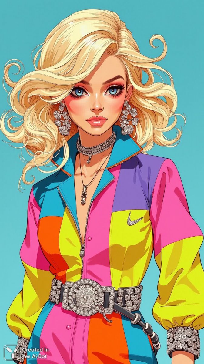 Воплощение моды и фантазии в одном кадре: эффектный портрет стильной женщины с роскошными волнами волос цвета блонд, напоминающего образ Барби, создает неповторимую атмосферу гламура. Яркий haute-couture наряд с дерзкими акцентами неоновых цветов и ослепительными аксессуарами подчеркивает смелый характер модели. Студийный свет, подобранный с мастерством, выделяет детали костюма и игру света на волосах, а яркий лазурный фон добавляет композиции глубины и контраста. Этот образ – настоящая феерия цвета и текстур, олицетворение современного стиля и безграничной креативности в мире моды. Фотография излучает уверенность и элегантность, демонстрируя высочайший уровень мастерства фотографа и безупречный вкус модели. Кажется, что перед нами ожившая иллюстрация из глянцевого журнала, вдохновляющая на создание собственных смелых образов и эксперименты с цветом и формой. В этом снимке гармонично сочетаются классическая красота и авангардные тенденции, создавая поистине незабываемое визуальное впечатление. Это не просто фотография – это произведение искусства, передающее дух свободы и самовыражения через моду