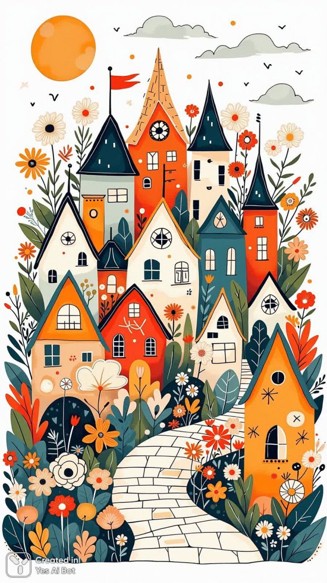 Очаровательная чернильная иллюстрация, пропитанная беззаботным настроением и наполненная радостью жизни. Перед вами оживает сказочная деревня, созданная в игривом и причудливом стиле. Дома здесь будто сошли с полотен волшебников – каждый дом уникален, обладает неповторимым характером и радует глаз своей добродушной формой. Яркие цветы щедро усыпают землю, добавляя красок и создавая атмосферу безмятежности и тепла. Пастельная цветовая палитра усиливает ощущение легкости и воздушности, словно перенося зрителя в мир грез и фантазий. Каждая деталь продумана с любовью и вниманием к мелочам – от забавных форм крыш до изящных лепестков цветов. Это не просто картинка, это окно в волшебную страну, где царит гармония, доброта и бесконечная радость. Идеально подойдет для тех, кто ценит оригинальность, креативность и стремится окружить себя позитивными эмоциями. Произведение искусства станет прекрасным украшением любого интерьера и подарит хорошее настроение своим обладателям. Насладитесь этой феерией красок и форм, окунитесь в атмосферу сказки и позвольте себе немного помечтать. Это настоящее произведение искусства, способное вдохновить и подарить ощущение счастья