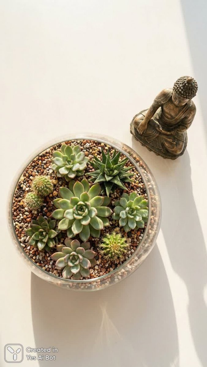 Мир суккулентов и кактусов: гармония природы и восточной философии в флорариуме - Пример изображения из нейросети Nano-Banana