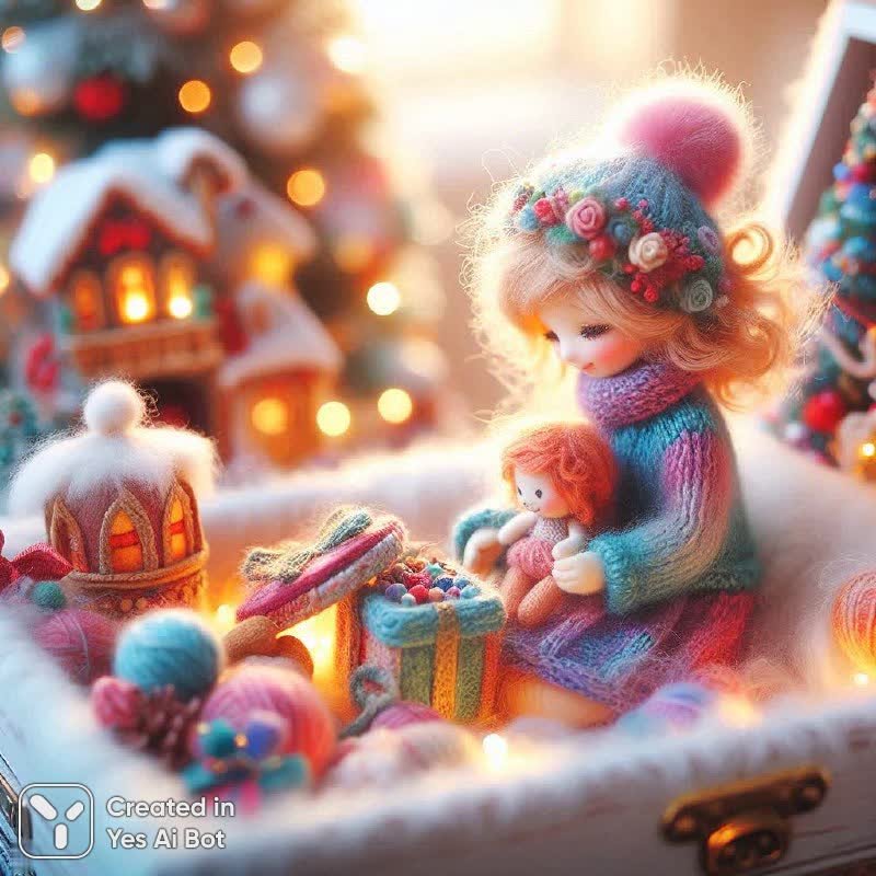 Вязаный арт: уютная новогодняя диорама из пряжи и фетра - Пример работы ИИ Dalle-3