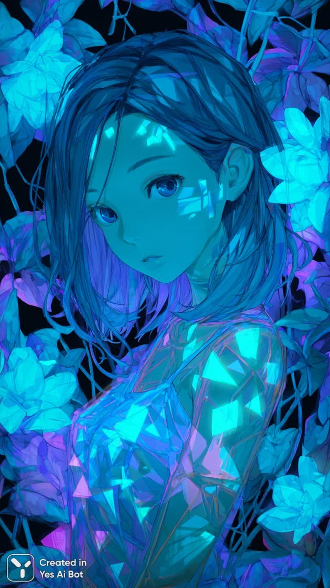 Яркая и захватывающая иллюстрация в технике чернил, представляющая собой аниме-девушку в стиле неонового киберпанка и яркой неоновой фэнтези. Образ акцентирован ультрафиолетовыми татуировками, создающими эффект голографии, что добавляет изображению глубины и футуристичности. Девушка окружена мерцающими неоновыми цветами и элементами неоновой живописи, создавая ощущение волшебного сада в цифровом пространстве. Все это разворачивается на фоне насыщенного черного фона, который усиливает яркость и контрастность неоновых оттенков. Картина представляет собой ослепительное визуальное пиршество, где переплетаются технологии будущего и красота фантазийной природы, создавая неповторимую атмосферу загадочности и притягательности. Использование насыщенных цветов и четких линий подчеркивает динамичность композиции и привлекает внимание к деталям. Этот образ идеально подойдет для обложки книги в жанре научной фантастики или фэнтези, а также станет отличным украшением для цифрового искусства. Яркие неоновые акценты создают эффект свечения и добавляют изображению особую энергию, делая его запоминающимся и впечатляющим. Изображение передает атмосферу будущего, полного тайн и возможностей, где технологии и искусство сливаются в единое целое