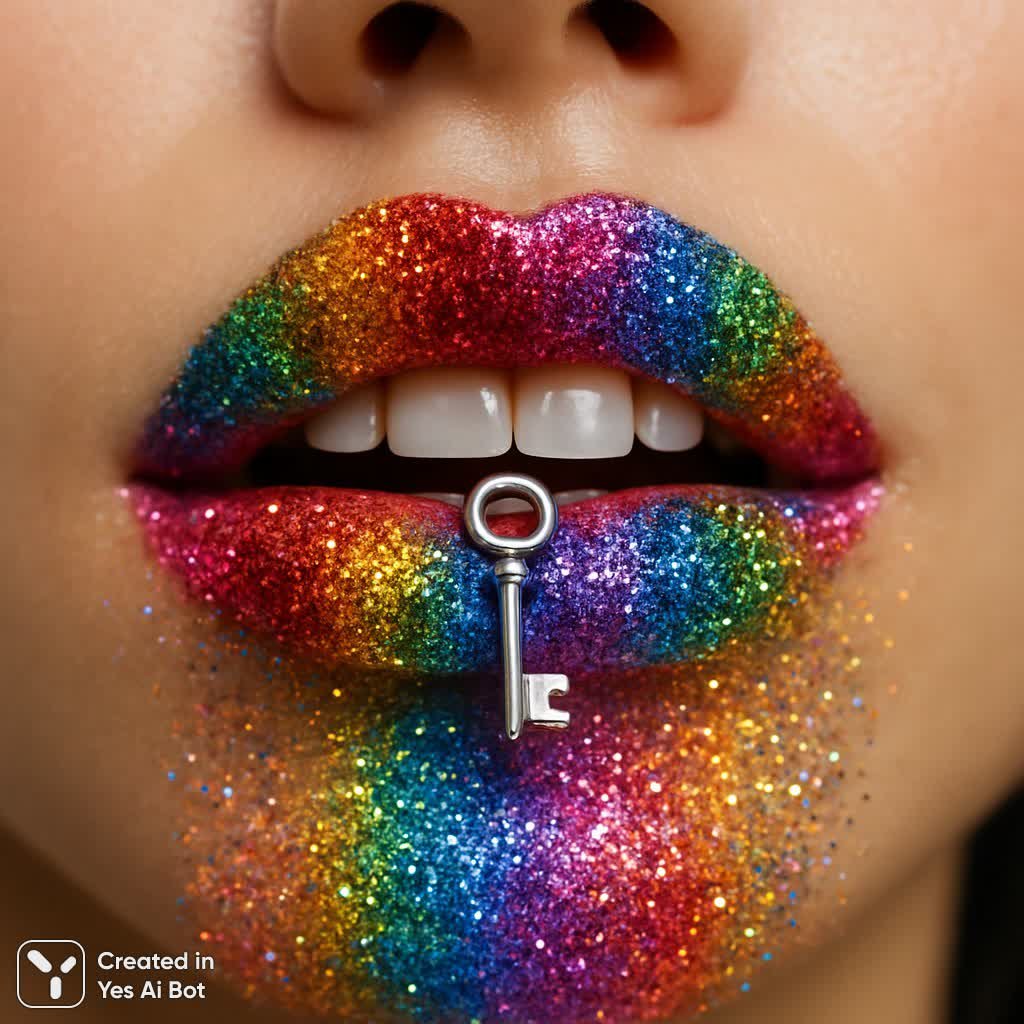 Блестящие губы с ключиком и радугой - Изображение, созданное нейросетью Sora Ai Images