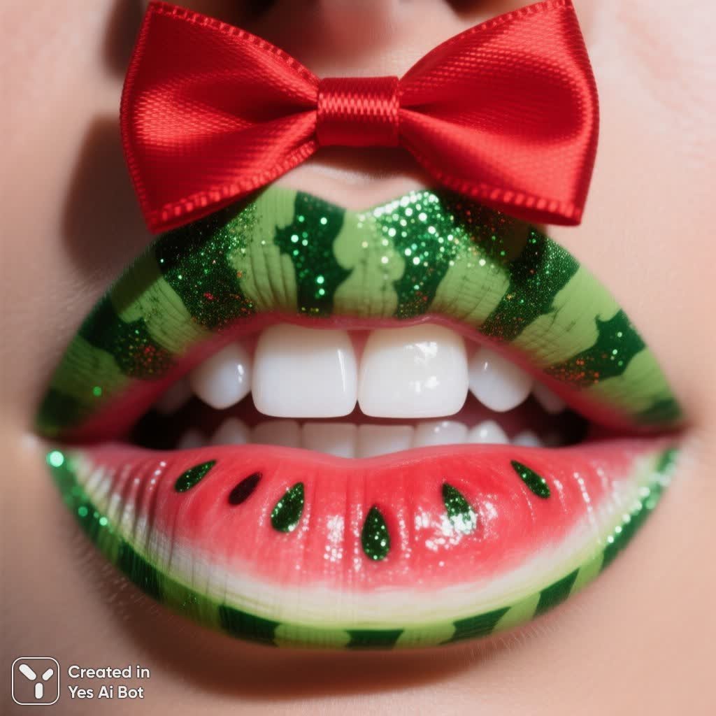Яркие губы: арбузный дизайн и рождественский блеск - Генерация изображения с помощью нейросети Qwen Image