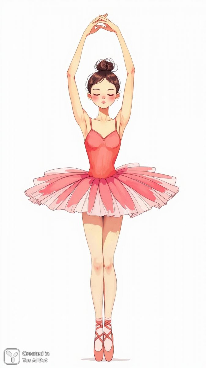 Нежная акварель, запечатлевшая юную балеринку в розовом пачке, исполняющую изящный танец. Ее поза полна грации: ноги согнуты в элегантном положении, руки приподняты вверх, словно стремясь к небесам. Глаза закрыты в состоянии умиротворения и безмятежности, позволяя зрителю ощутить внутреннюю гармонию танцовщицы. Простая прическа – аккуратный пучок – подчеркивает чистоту и невинность образа. Белый фон служит идеальным фоном, акцентируя внимание на фигуре балерины и создавая ощущение легкости и воздушности. Картина пронизана духом народного искусства, передающим теплоту и искренность. В каждом мазке чувствуется любовь к танцу и стремление запечатлеть момент красоты и вдохновения. Этот образ – воплощение женственности, грации и внутренней силы, способный вызвать самые светлые чувства и эмоции у зрителя. Он словно приглашает нас окунуться в мир музыки и танца, где царит гармония и красота. Это не просто изображение балерины, это история, рассказанная языком красок и света, повествующая о стремлении к совершенству и радости творчества
