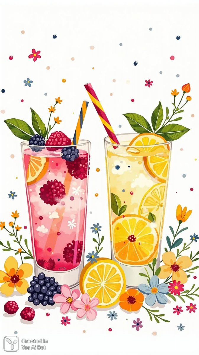 Летняя прохлада: яркие лимонады и игривый рисунок - Генерация в нейросети Flux 1