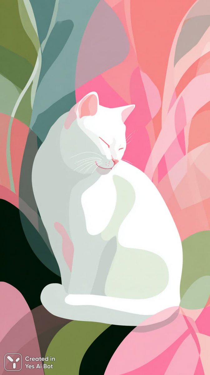 Изящный портрет кота в черно-белой гамме, погруженного в безмятежную дрему с сомкнутыми глазами, деликатно выделяется на фоне яркого абстрактного пейзажа. Фон представляет собой гармоничное сочетание нежных розовых и сочных зеленых оттенков, выполненное в стиле стилизации, характеризующейся плавными кривыми линиями и четкими геометрическими формами. Минималистичный дизайн подчеркивает чистоту композиции и акцентирует внимание на грации животного. В палитре присутствуют яркие цветовые акценты, созданные с использованием нежных пастельных тонов, которые добавляют изображению легкости и воздушности. Изображение выполнено в формате векторной графики, что обеспечивает его масштабируемость без потери качества. Четкость линий и детализация передают ощущение мягкости и тепла, приглашая зрителя созерцать спокойствие и умиротворение, отраженные в образе спящего кота. Это визуально привлекательное произведение искусства станет прекрасным дополнением к любому проекту, требующему элегантности и современного дизайна. Использование формата png гарантирует совместимость с различными платформами и приложениями