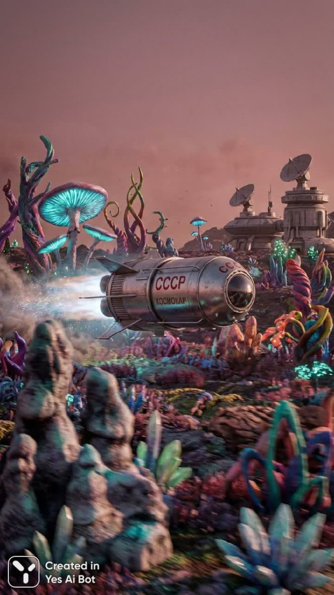 nanobanana Советский Союз: футуристический снимок внеземного пейзажа и передовых технологий. Изображение из нейросети NanoBanana