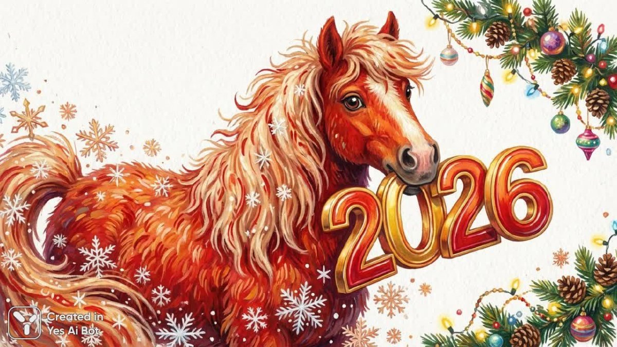 Очаровательный мультяшный конь, окутанный пламенем, предстает в праздничном обличье – на нем длинный шерстяной пальто, а вокруг кружатся снежинки и мерцают рождественские гирлянды. В пасти у него блестящие цифры 2026, символизирующие наступление нового года. Эта наивная иллюстрация в технике гуаши излучает неподдельную радость и беззаботность, создавая атмосферу настоящего праздника. Изображение выполнено на белом текстурированном фоне, что добавляет ему объемности и ощущения тепла. Конь выглядит игривым и жизнерадостным – его глаза светятся весельем, а поза полна энергии. Картина вызывает самые приятные эмоции и ассоциируется с волшебством зимних праздников, семейным уютом и предвкушением чудес. Это идеальное новогоднее украшение или просто милый рисунок, который поднимет настроение в любой день. Яркие цвета и простые формы делают его привлекательным для детей и взрослых, а общая композиция наполнена позитивом и оптимизмом. Чувствуется искренняя любовь к празднику и желание поделиться этой радостью со всем миром. Это не просто изображение – это воплощение новогоднего настроения в ярких красках и забавной форме