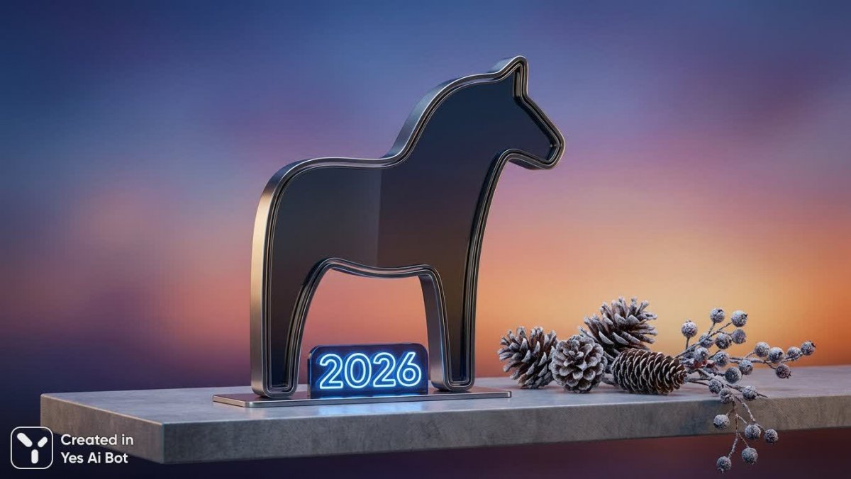 nanobanana Современный минимализм: силуэт коня и праздник 2026. Генерация из нейросети NanoBanana