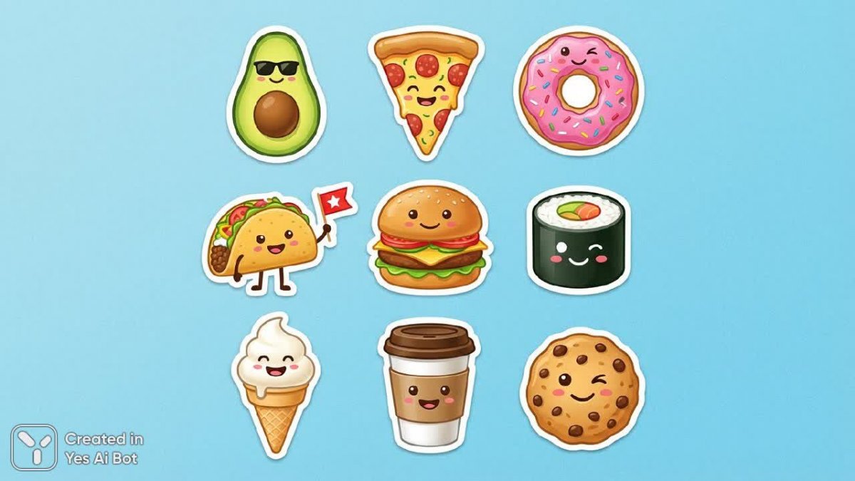 Веселые наклейки: аппетитный мир еды в стиле минимализм - Изображение, созданное нейросетью NanoBanana