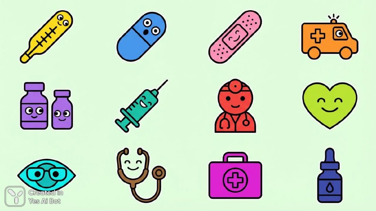 Игривые медицинские иконки: минимализм и яркие цвета для вашего проекта - Картинка, сгенерированная нейросетью Нано Банана