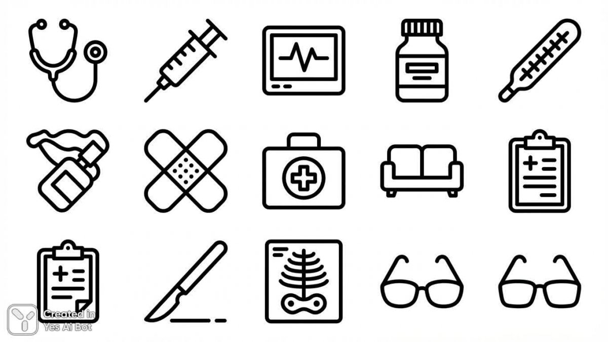 Медицинские иконки: минимализм и четкие линии в стиле line art - Пример изображения из нейросети Нано Банана